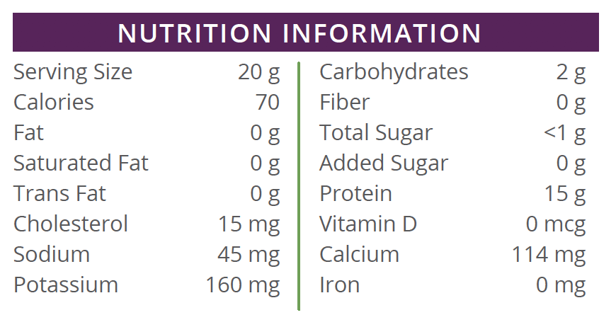 Hydrolyzed Gelatin, Whey Protein Concentrate, Citric Acid, Maltodextrin, Malic Acid, Potassium Citrate, Natural and Artificial Flavor, Beta Carotene, Tricalcium Phosphate, Turmeric Color, Sucralose, Turmeric Powder, Soy Lecithin.